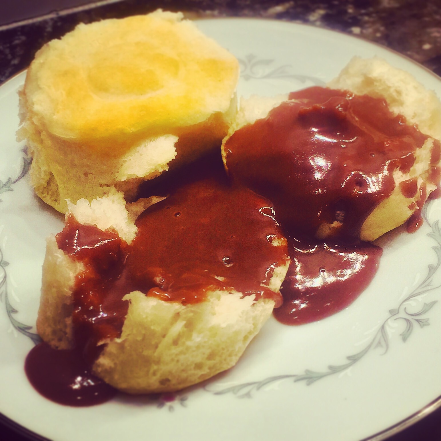 Chocolate Gravy and Bisquits breakfast for two From my kitchen 12/13/15