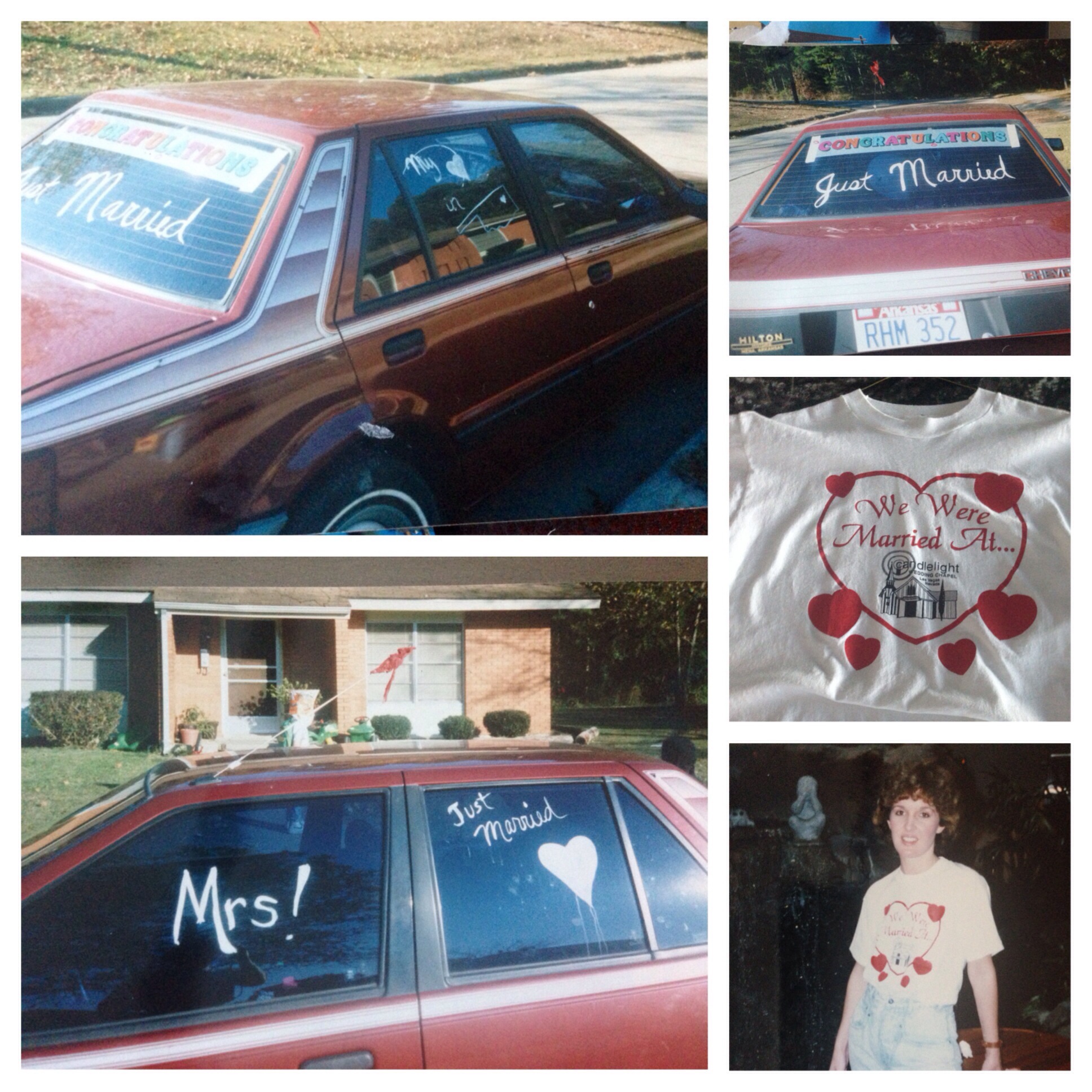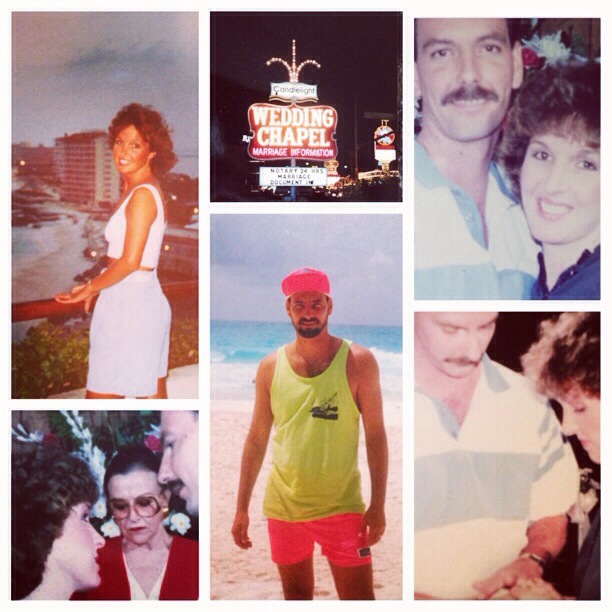 Funny picture in my mind is……for some reason we decided to buy souvenir T-shirts and wear them home on the plane. Don’t ask me why; I have NO idea, ha! I just know Mike and I have never since worn matching shirts in any form for any reason, but it seemed the thing to do at the time. So there we were, on the plane, exhausted from the exciting whirlwind of our weekend. Our T -shirts said, “We were married at the Candle Light Wedding Chapel in Las Vegas”…..haha, must have been a pretty funny sight. We both fell asleep and Mike said he woke up and saw someone laughing at us. Oh my. So funny, looking back.